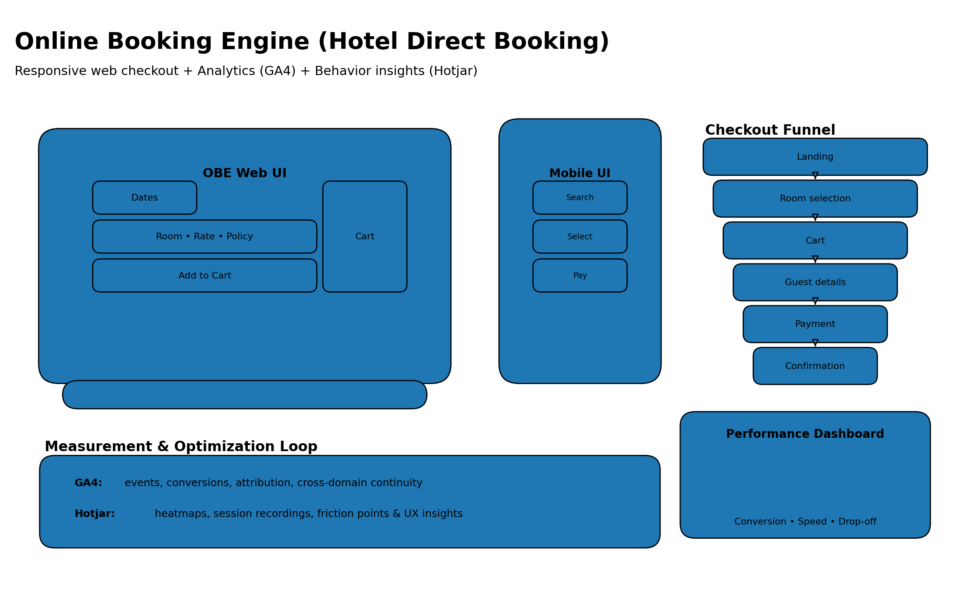 - Reduced system latency of the e-commerce direct reservation platform by 30% via platform modernization.